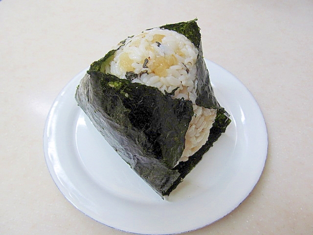 揚げ玉と青のりのおにぎり たくあん漬け付き の写真素材 6556