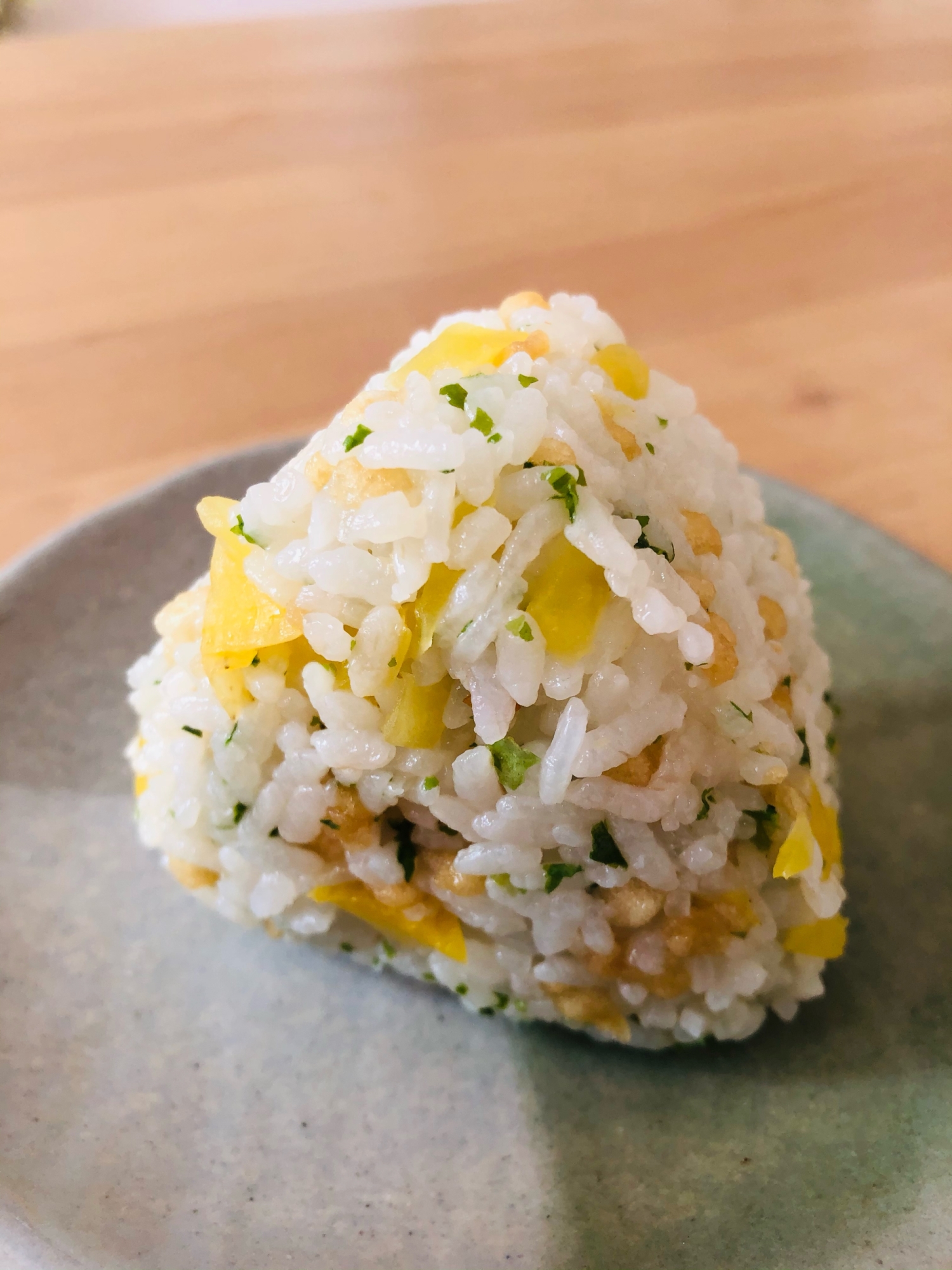 たくあんと天かすのやみつきおにぎり 作り方 レシピ クラシル