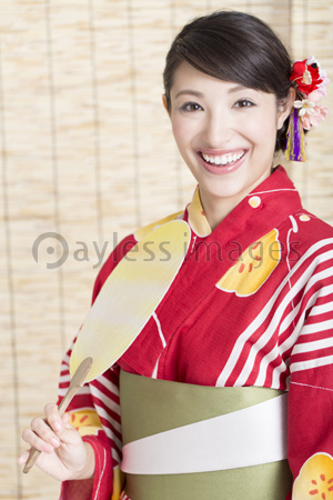 うちわを扇ぐ浴衣姿の女性 商用利用可能な写真素材 イラスト素材ならストックフォトの定額制ペイレスイメージズ
